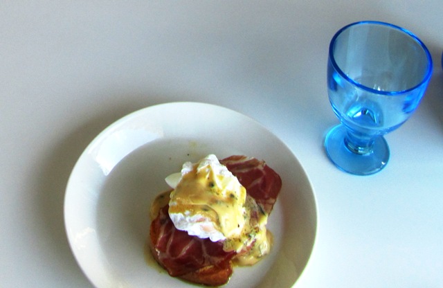 prosciutto-brusetta uppomunan ja bearnaiskastikkeen kera