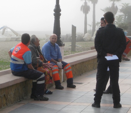 Poliisit ja ambulanssimiehet jututtavat "mummoa"