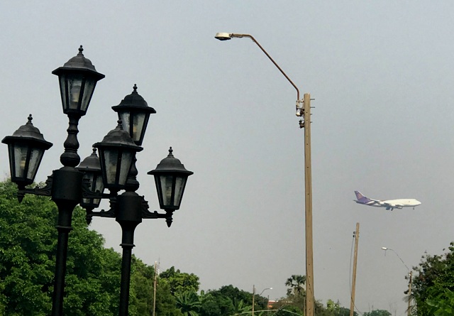 =>Seuraava sivu Aranta-Hotel Bangkok *** Iltapäivä joenvarressa - vilkasta lentoliikennettä katsellen