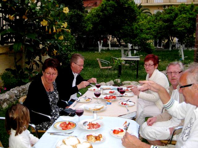 Stifado-illallinen puutarhassa