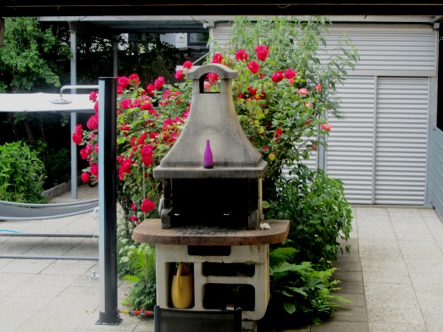 Ulkogrilliäkin koristaa mahtava ruusupensas