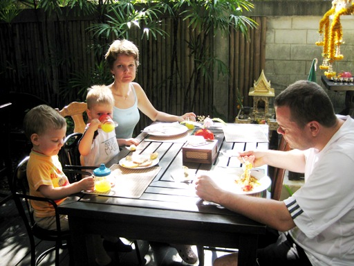 Aamupalaksi mehua ja hiukan leipää ja muroja.