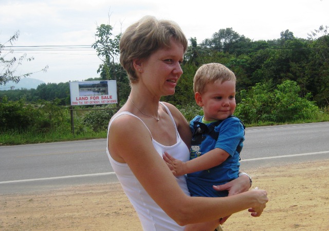 Petrus seuraa tilannetta turvallisesti äidin sylissä