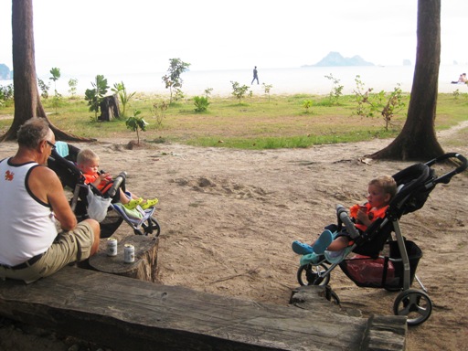 Istuskelupaikkoja Noppharat rannan loppupäässä paikallisten suosimassa puistossa