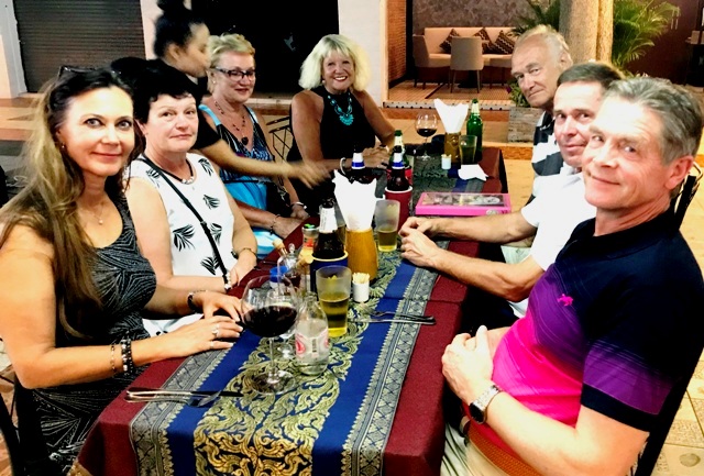 Isolla porukalla syömässä "Kuun hymy" (Moon Smile) ravintolassa.