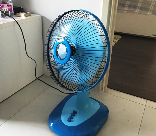 leyhytellä ilmaa huoneistossa. Tuulettimen hintakin oli lompakolle