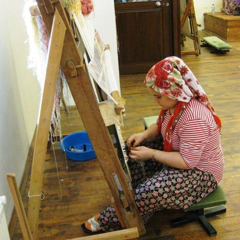 Kangaspuissa valmistumassa silkkireliefi